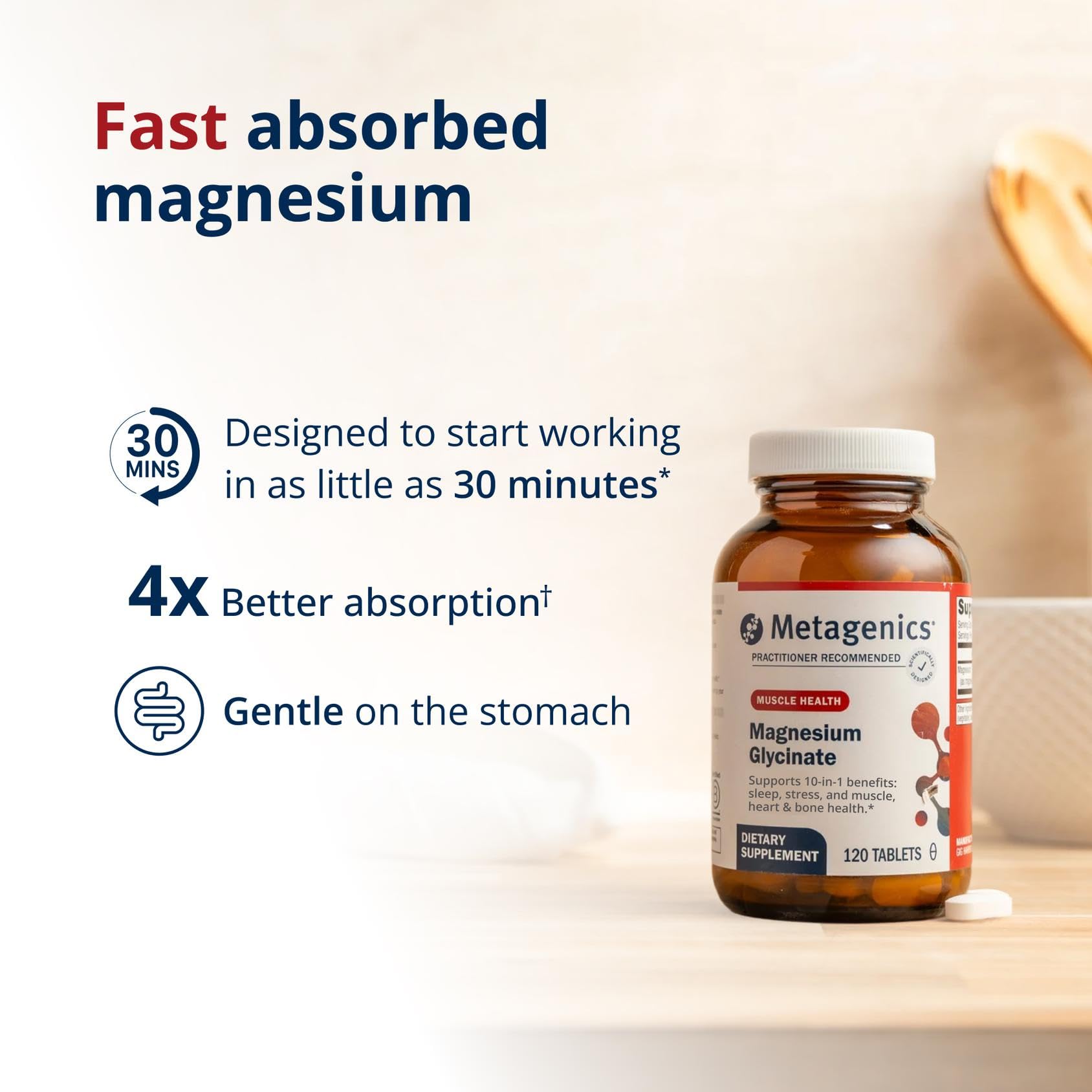 Metagenics Magnesium Glycinate - Highly Absorbable Magnesium Supplement for Sleep, Stress Relief & Muscle Relaxation* - Supports Bone, Heart & Nerve Health* - Non-GMO, Gluten-Free - 120 Tablets